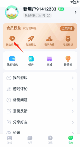成为会员之后会赠送游戏时长,还有加速(jiasu)排队、夜间凂曊、专属标识等权益。