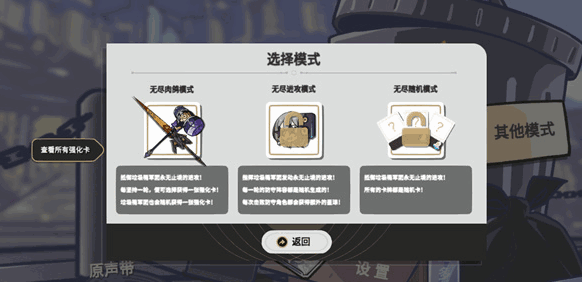 2、再就(jiu)是有无尽肉鸽模式、无尽进攻模式、无尽随机模式