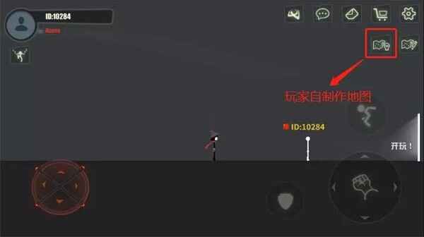 7、玩家自制地图按钮,《逗斗火柴人》支持火柴君们自己制作地图,每个火柴君制作地图都能在此显示哦!