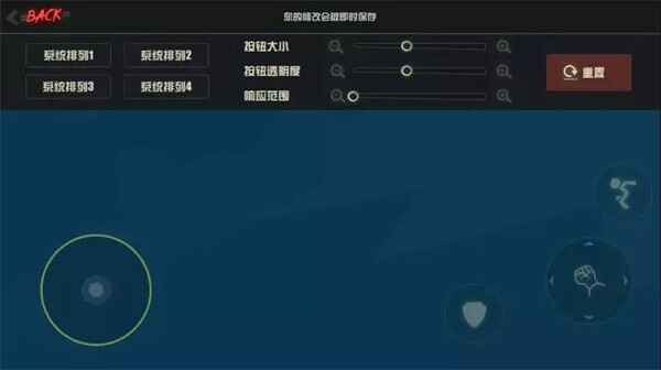 12、自定义布局中可以设置四个基本功能键的按钮大小,按钮透明度以及响应范围,系统提供4种排列方案,我们可以保存4种常用的不同(different)排列方案,以(yi)便之后快速切换。