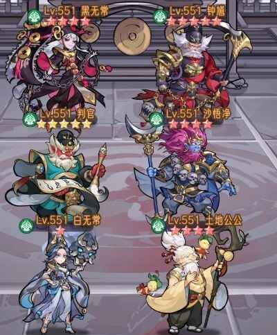 一号位:钟馗;二号位:沙悟净;三号位:土地公公;四号位:黑无常;五号位:判官/夜叉王;六号位:白无常。