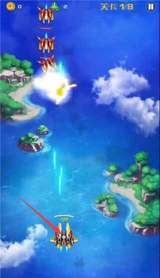 2、进入关卡战机将自动发射子弹