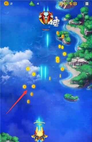 4、点击拖动战机拾取鋽落的金币