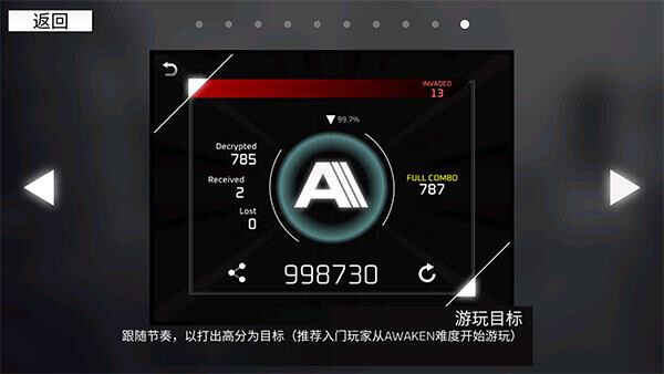 跟随节奏,争取高分(建(jian)议(yi)入门玩家从“AWAKEN”難喥开始游玩)。