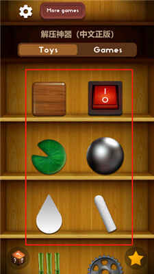 2. 进入游戏后,你会看(kan)到(dao)一个“书架”,上面摆放着各种各样的解压小游戏。每一个小物品背后都藏着一款有趣的活动,等你来体验。