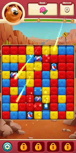 用户通过(guo)点击相邻的相同颜色方块(kuai)进行消除,形成(form)连锁反应以获得更高的分数。每个关卡都有特定的任务(Task)目标,如消除一定数量的方块(kuai)、收集特定物品等。