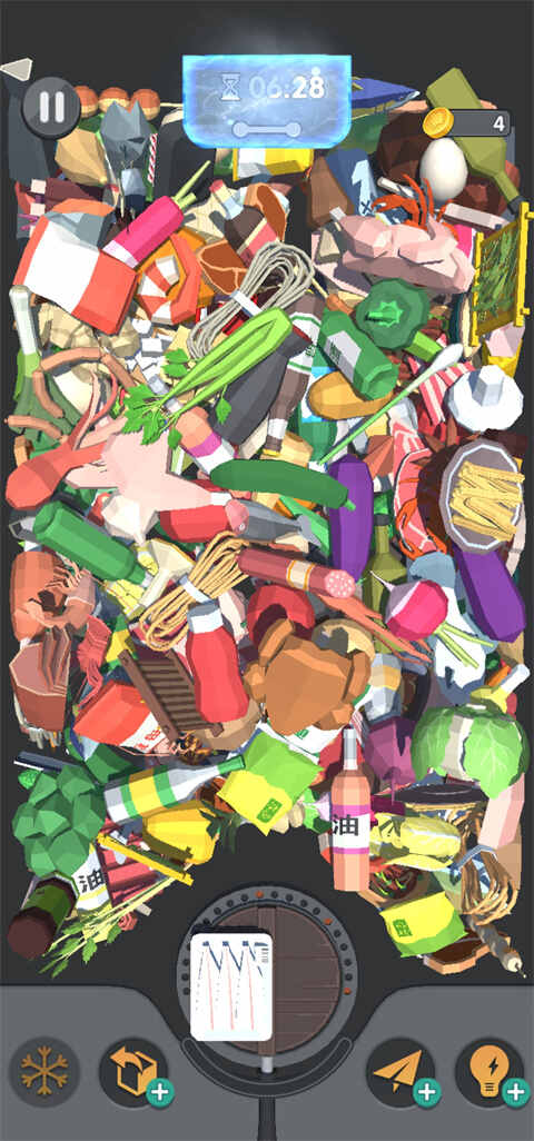 6、每个关卡都有时间限制,玩家需要在限定时间内将所有物品消除。如果遇到困难,可以使用道具帮助过关。