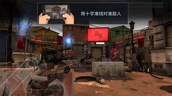 3、当敌人在瞄准范围内时,点击开火按钮进行射击,将敌人消灭。