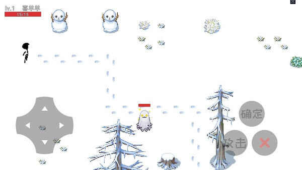 6. 进入当前地图(ditu)后,使用左侧的虚拟摇杆控制移动,右侧的确定、攻击按钮和“X”返回键组(zu)合,操作非常简单。在地图(ditu)上,你会遇到带有红色血条的敌人,点击攻击按钮进行战斗,同时注意躲(duo)避敌人的攻击,因为你只有一次生命。