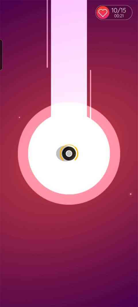 1、打开游戏后,player会看到一个圆圈中间只有一颗小球。点击屏幕,小球会自动开始移动。player需要做的是,在小球经过转折点时点击屏幕。务必在小球到达地上的白圆圈时点击屏幕,以便它能够顺利转变方向。