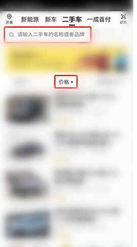 3、点击(click)二手车进入二手车选购界面,可途径搜索功能先初步搜索心仪的品牌,途径价格設置能接受的价格区间。