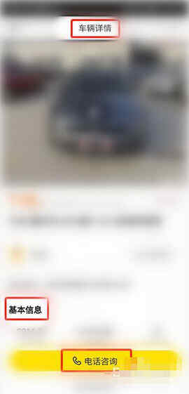 5、选定车辆进入车辆详情界面,可查看车辆基本信息,有意向可直接电话咨询了解车辆详细情况。