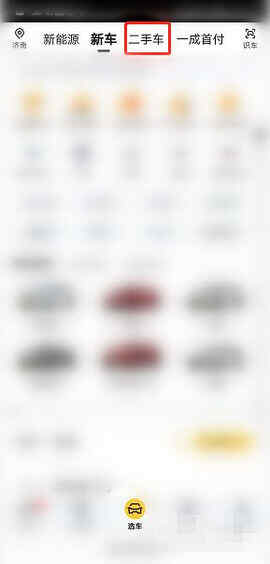 2、点击(click)选车进入选车界面,找(zhao)到【二手车】。