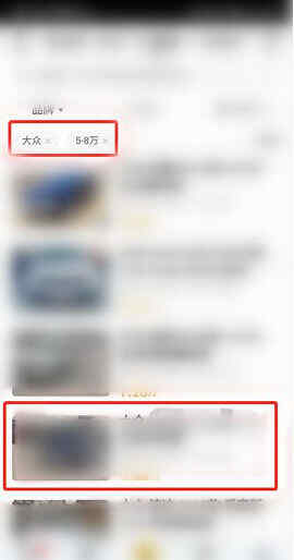 4、設置做成后进入筛选結淉界面,找(zhao)到自己比较心仪的车辆。