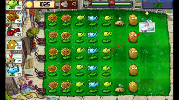 游戏的玩法与经典的植物大战僵尸类似。玩家需要经过收集阳光来种植各种植物,用以抵御逐步逼近的僵尸。阳光会自动产生,玩家可以点击阳光并积攒,用于购买植物并放置在合适的位(wei)置。
