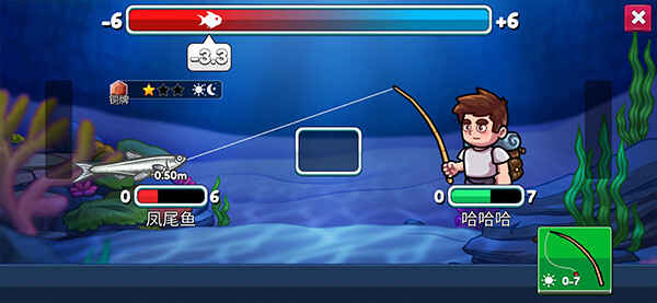 3、屏幕(Screen)下方还会显示一个“力量条”,这个条形图左右摇摆,反映了你与鱼之间的力量差距。当你的力量条领先于鱼时,表示你掌握了更多的主动权,此时你的拉力会变得更强,拉近你与鱼之间的距离。
