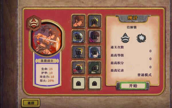 點擊“新游戏”按钮(anniu)后,你将会看到一个默认免费的角色——圣盾战士。如果你想使用其他角色,可以选择點擊对应的按钮(anniu),系统会提示(tishi)你媾荬英雄包。