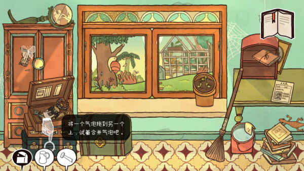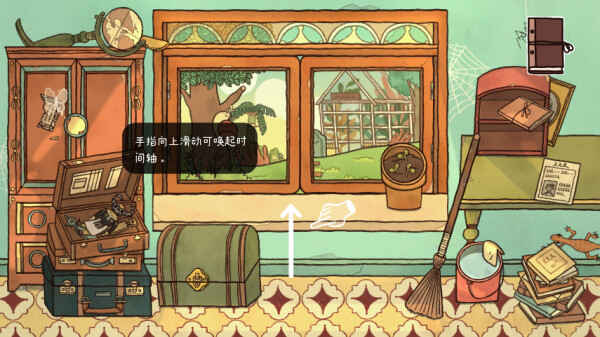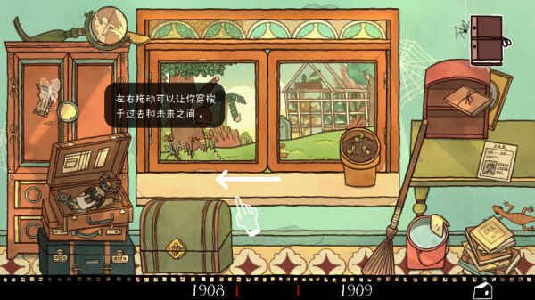 跟随操作提(ti)示(shi),点击箱子拿出日记本。将水壶中的花朵取出并点击水壶,再返回1908年点击喷头,组装水壶与喷头后获得水壶。用水壶给窗台上的花盆浇水,然(ran)后(hou)切换到1909年,拿走窗台上的硬币。
