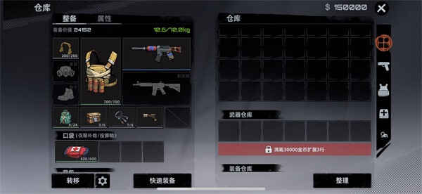 在仓库界面,您可以查看并管理(li)所有的物資、装备和战利品。仓库空间被分为不同的区(qu)域(yu),例如通用仓库、武器仓库、装备仓库等,每个仓库类别存放相应类型的物品。为了应对不断增长的物資,您可以使用金币扩展仓库空间,确(que)保能够(can)存储更多的资源和装备。