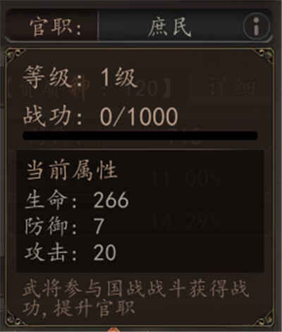 一在游戏中,武将可以通过参与国战来积累战功,战功的提升将直接影响武将的官职,从而获得更强的属性加成。这种机制不仅能提升武将的战斗力,还能让玩家根据武将的表现逐步提升其地位,使其在战场上发挥更大的作用。