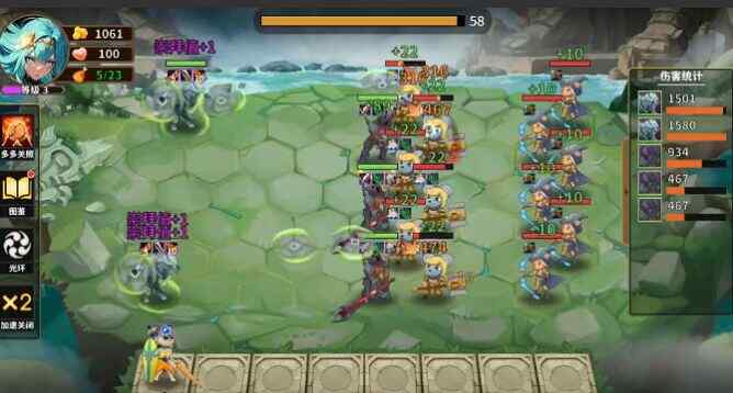 2、获得一系列的资源与武器(arms),强化你的队伍,不断升级你的英雄;
