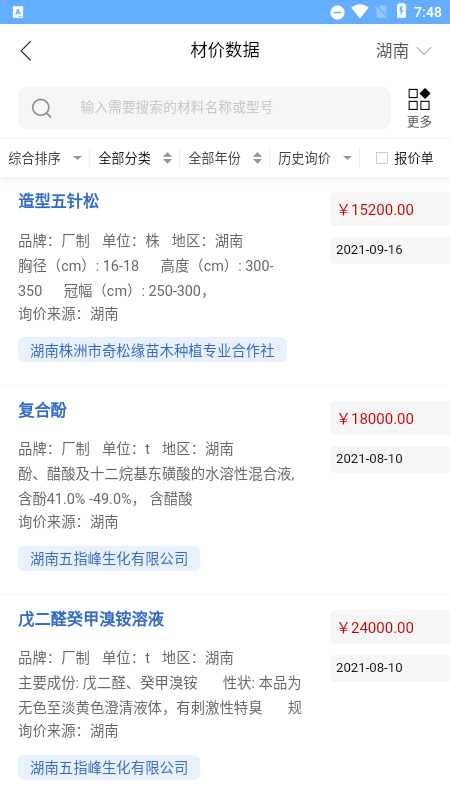 2. 全面的价格信息:全国各地材料(Material)价格全面收录,方便价格对比。