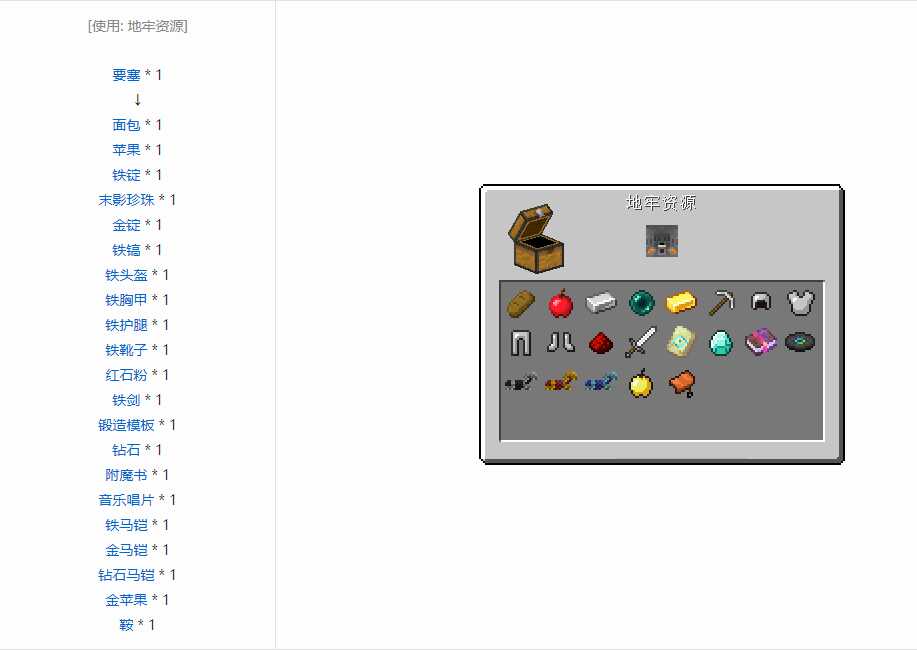 要塞、NPC 村庄的箱子里会存(cun)在苹果。