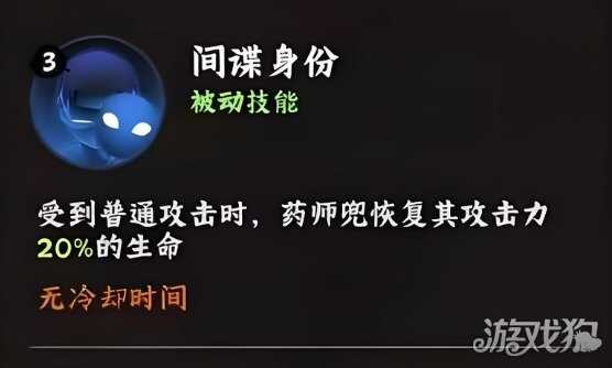再看他的被动技能之一间谍身份,每当药师兜受到普通攻击时,便会依据自身攻击力的20%恢复生命值,而且这一效果毫无冷却时间的限制,这意味着在战斗中,药师兜能够凭借频繁触发的生命回复机制,持续维持自身的血量健康,极大地增强了他在战场上的生存能(neng)力(li)。无论是面对敌人的零星打击还是密集火力,他都能凭借这一技能顽强地站立在前线,为队友分担压力。
