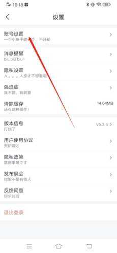2、在设置页(ye)面(mian),点击最上方的“账号设置”;