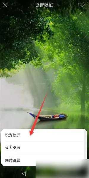 4、点(dian)击(ji)应用之后在页面右上角点(dian)击(ji)打勾,然(ran)后页面下方就會出(chu)现(xian)选项,设为锁屏或桌面或同时设定,如下图