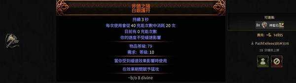 虽说装备要求不算特别高,但也需要基础的盾量支撑,不建议初入异界就考虑,可以先使用旋风或正常闪电箭积累足够的通货和装备后再转型