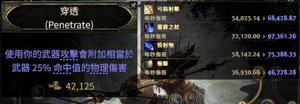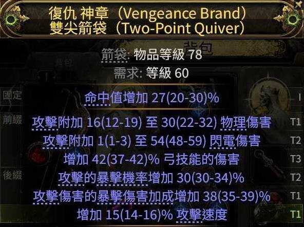 前缀优先物理点伤、闪电点伤、弓类伤、命中值、投射物速度,如果有投射物速度需要在天赋中配置【羽毛剑羽】天赋,使投射物速度套用弓类伤