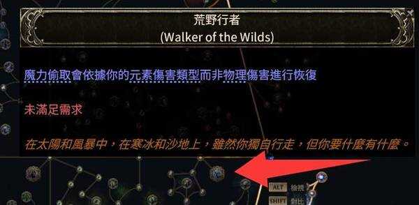 闪电箭本身是一个十分耗蓝的BD,如果不习惯喝蓝药,可以配置天赋盘右侧的荒野行者,让魔力偷取也从依据物理伤害变为依据元素伤害,在接敌的情况下可以保持满蓝