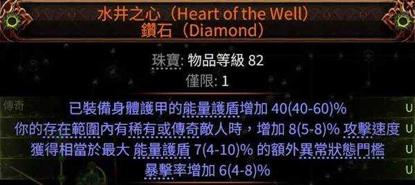 基于胸甲的护盾、有盟友时INC、暴击爆伤、瞬偷、幸运电,这些都是很好(very good)的词,有两三条不错的就可以用,取代一颗正常的珠宝