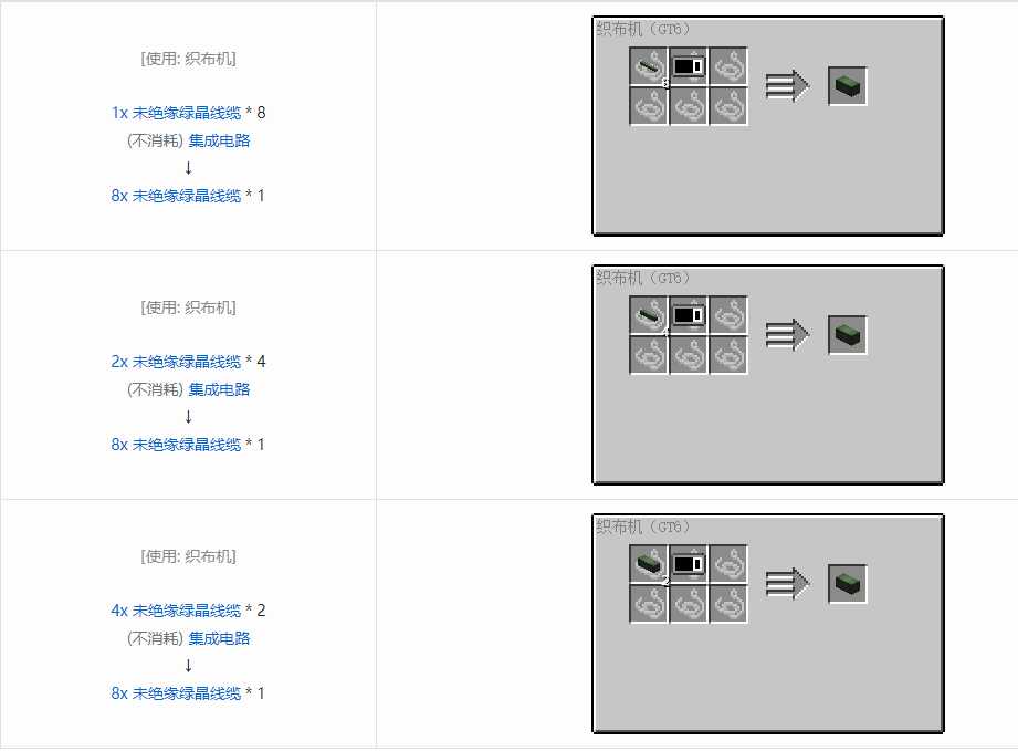 我的世界格雷科技6 8x 未绝缘线缆合成表大全8x 未绝缘绿晶线缆