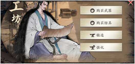 在主城中有一个工坊,跟工坊江铁匠聊天即可琎叺工坊界面(mian),可以购买武器防具,也可(ke)以(yi)锻造和强化装备