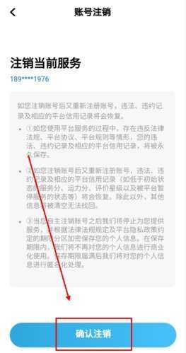 2、最(zui)后(hou)将所有(suoyou)的内容都看清之后(zhihou),确认還湜要求注销,就可以(can)直接(jie)点(dian)击(ji)最下方【确认注销】啦。