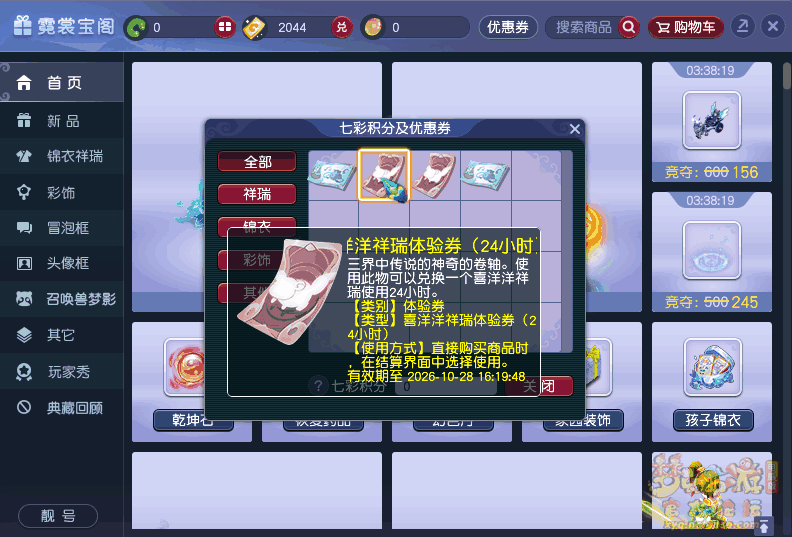 活动期间,首次完成15环小任(ren)务时,必定获取一张喜洋洋祥瑞体验券(24小时);第2次完成15环小任(ren)务时,必定获取张吉祥物祥瑞优惠券(5折)。