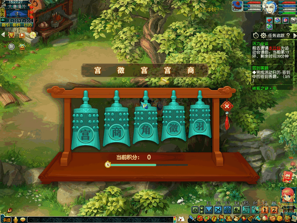2、任(ren)务时限40分(fen)钟,可以(keyi)在喜洋洋(朱紫国99,64)或乐融融(朱紫国106,60)处取消任(ren)务,取消任(ren)务3分(fen)钟内不能再次领取(receive)任(ren)务。