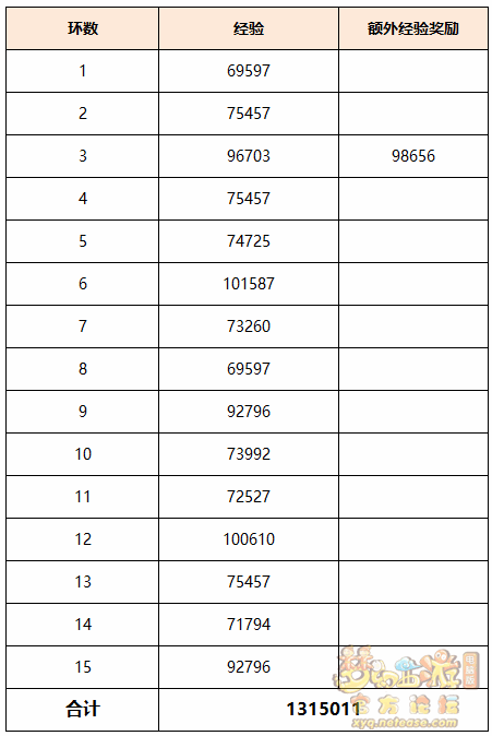 以109级为例,完成15环可獲得经验、储备金獎勵如下表: