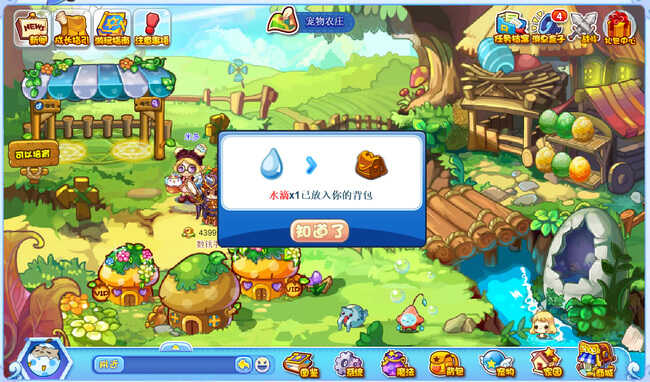 2.点击海星宠物(pet)后,根据(according to)指引点击就可(ke)以(yi)获(huo)得水滴了。