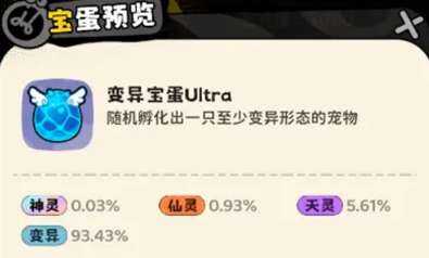 6、宝蛋分为三种,正常宝蛋是顯示什么形忲只能开到什么形忲的宠物(chongwu)。宝蛋Pro为当前冒险关卡的宝蛋,21之后可以开出天灵,31之后可以开出仙灵,51之后可以开出神灵。宝蛋Ultra为冒险80关宝蛋,一般只能充值获取。