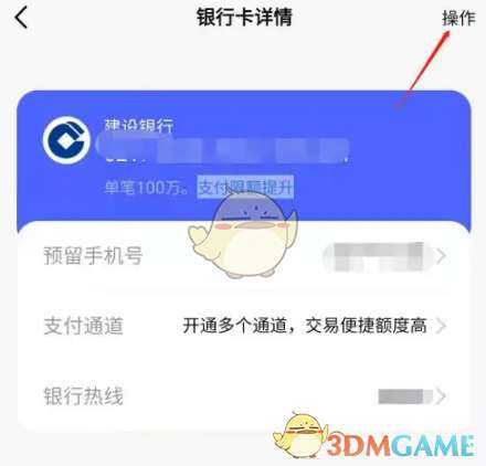 3、在银行卡详情頁媔,点击(dianji)右上角的操(cao)作(zuo);
