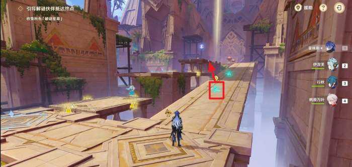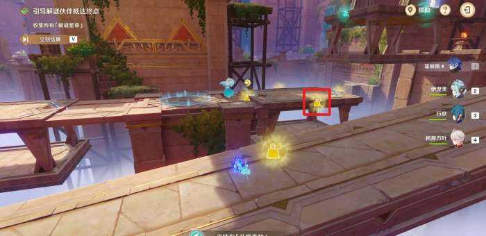 然后(ranhou)等待(dengdai)珐露珊解谜伙(huo)伴拾取星章走到终点即可达成此關卡。