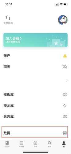 1、进(jin)入(ru)格志日记后,點击右下角的“我”,再點击进(jin)入(ru)“数据(shuju)”;