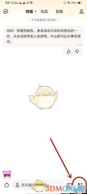 1、打(da)开(kai)文心一言app首页(shouye),点击右下角“电话”图标(tubiao)。