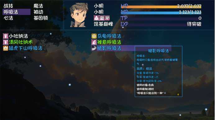 2.然後回退至选择(hoose)技能(skill)界(jie)面(回退2下),然後QE切换(huan)人物(wu),比如(for example)我现在(xianzai)按Q切换(huan)小明,应用他(ta)的呼吸法