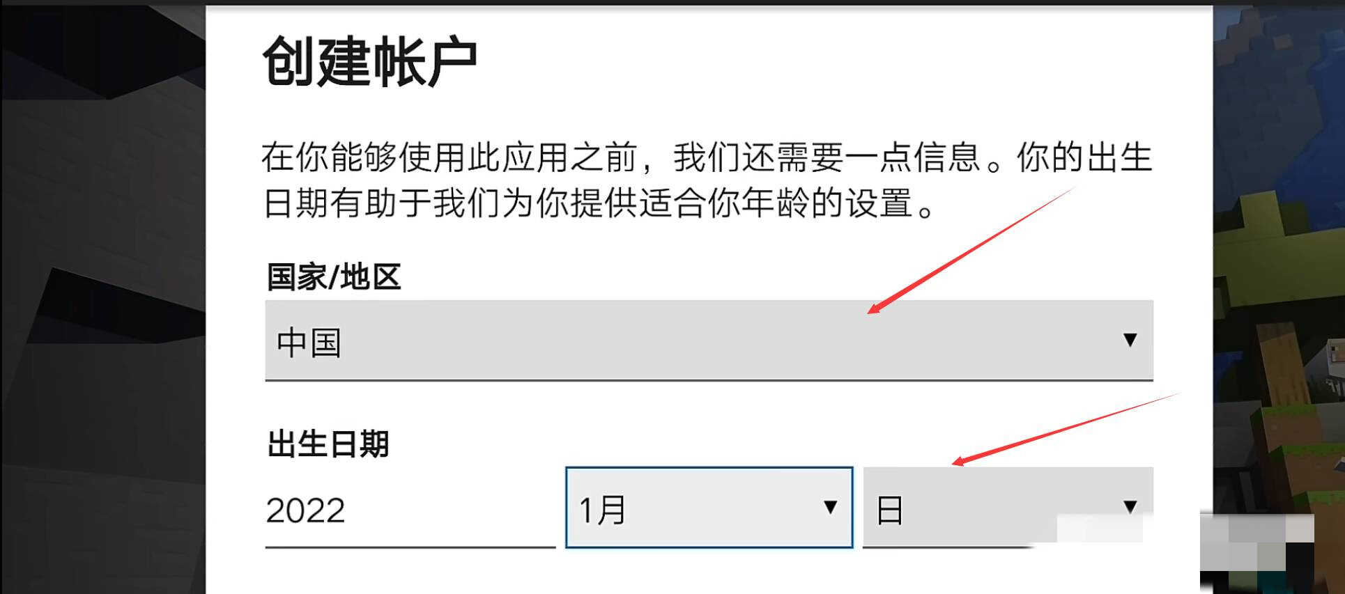5、選擇国(guo)家以及(ji)出生日期,可以(keyi)随便填写