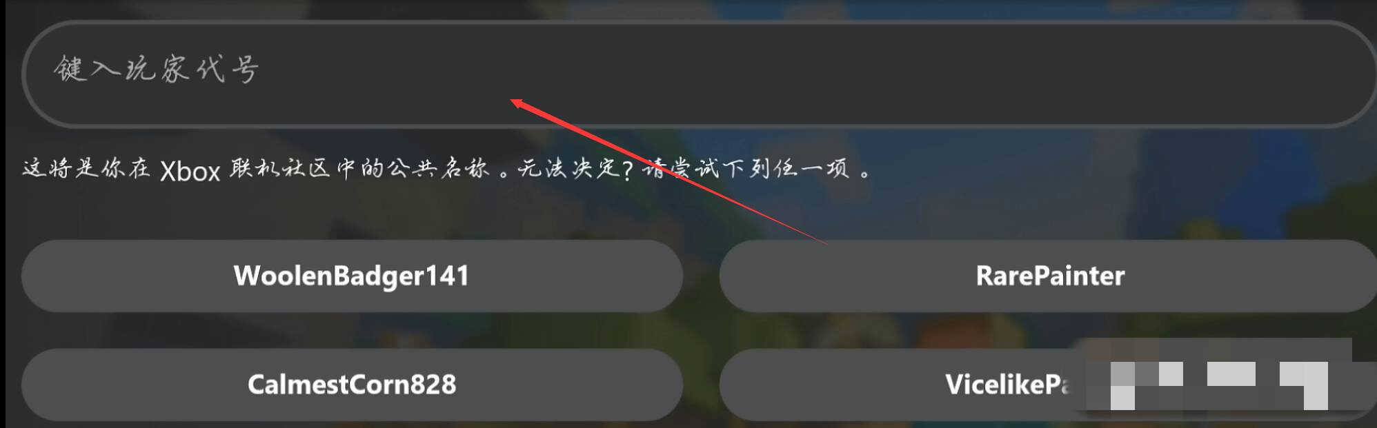 9、選擇好头像后向下滑,输(shu)入(ru)玩家代号,必须是英文,可以(keyi)直接選擇下面的也可以(keyi)自己创建