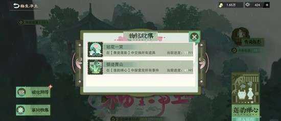 打完之后可以看左上角的地图探险度有没有达到100%来检查(cha),最后退回首页的时候(shihou),记得到右上角青瓷莲影交换道具,全(quan)部(bu)交换完了给物铭(物铭在首页左上角查看)